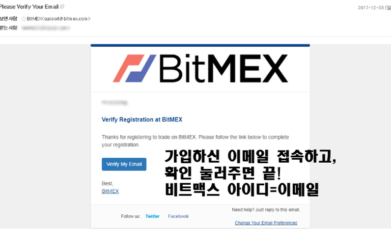 가입하신 이메일 접속하시면 비트맥스(bitmex)로 부터 이메일 전송이 되어있습니다.