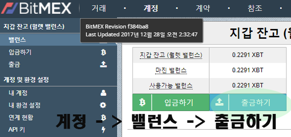 비트맥스 -> 계정 -> 밸런스 -> 출금하기 클릭합니다