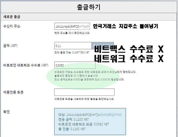 이때 수수료는 따로 비트맥스 수수료는 들지 않으면 비트코인 자체적인 트렌젝션