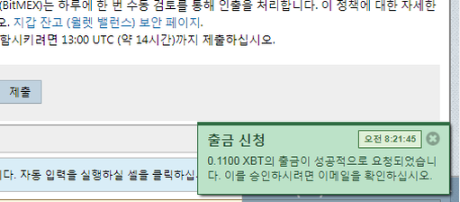 단 입금과 다르게 24시간 출금이 아닌 매일 한국시간 10시 하루에 한번 일괄적으로 출금이 진행되고 최대 2시간 정도 소모됩니다.