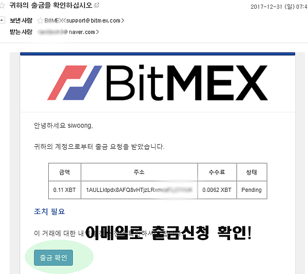 이렇게 출금신청을 합니다. 그리고 이메일 출금 확인!