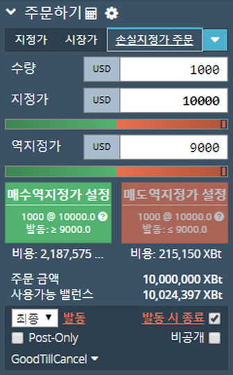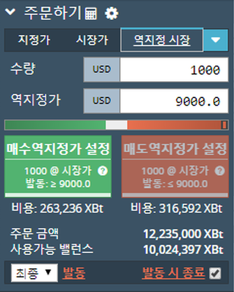 - 역지정가 USD9000 금액이 되면 USD1000 을 발동하게 됩니다.