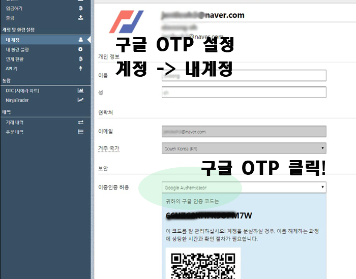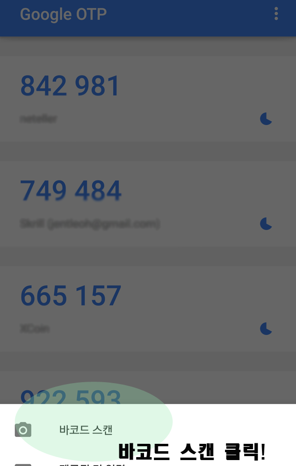 계정과 OTP로 쓰여질 자신의 핸드폰과 연동작업을 해야됩니다.