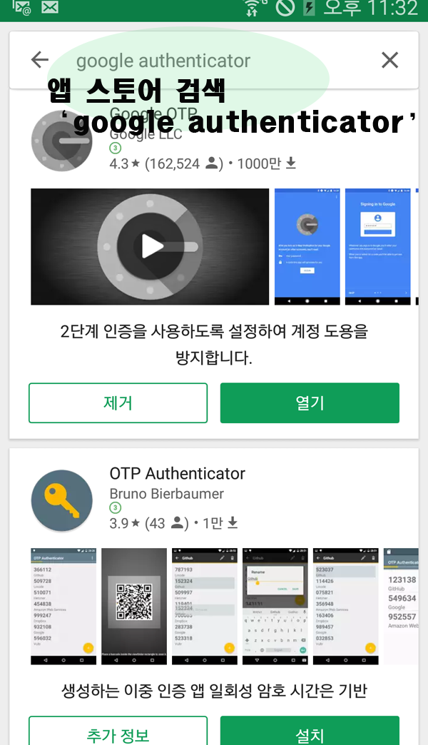 먼저 앱스토어에서 구글 OTP앱을 다운받으셔야 합니다.