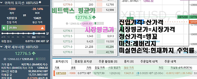 공매도를 시장가(12727.5)에 주문을 넣었으니 진입가격이 12727.5이 되겠고 다음 시장평균가는 현재 시장의 가격입니다.