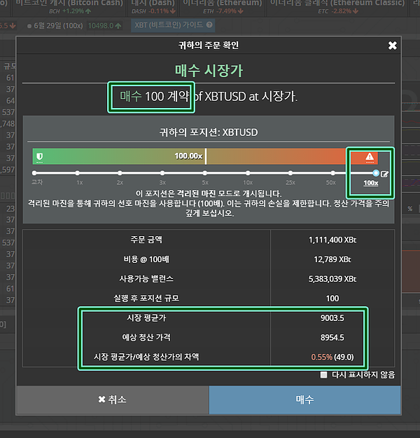 그 이유는 주문 창을 확인하고 체결을 눌렀을때 시장평균가가 변할수 있기 때문이죠.