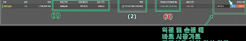 (2)마진 증거금13,142XBT 와 배수(레버리지100.00배) 가 확인 됩니다.