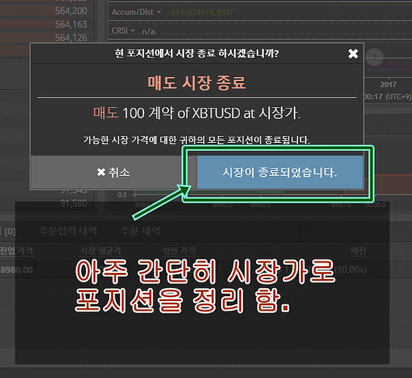 여기에서 더 떨어져 마진(증거금) 잔액이 0 이 되면 계약이 종료 되겠죠?